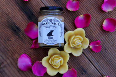 • One 9oz Jar of our Rose Infused Raw Honey made of: Raw Unfiltered Clover Honey, Organic Rose Petals.